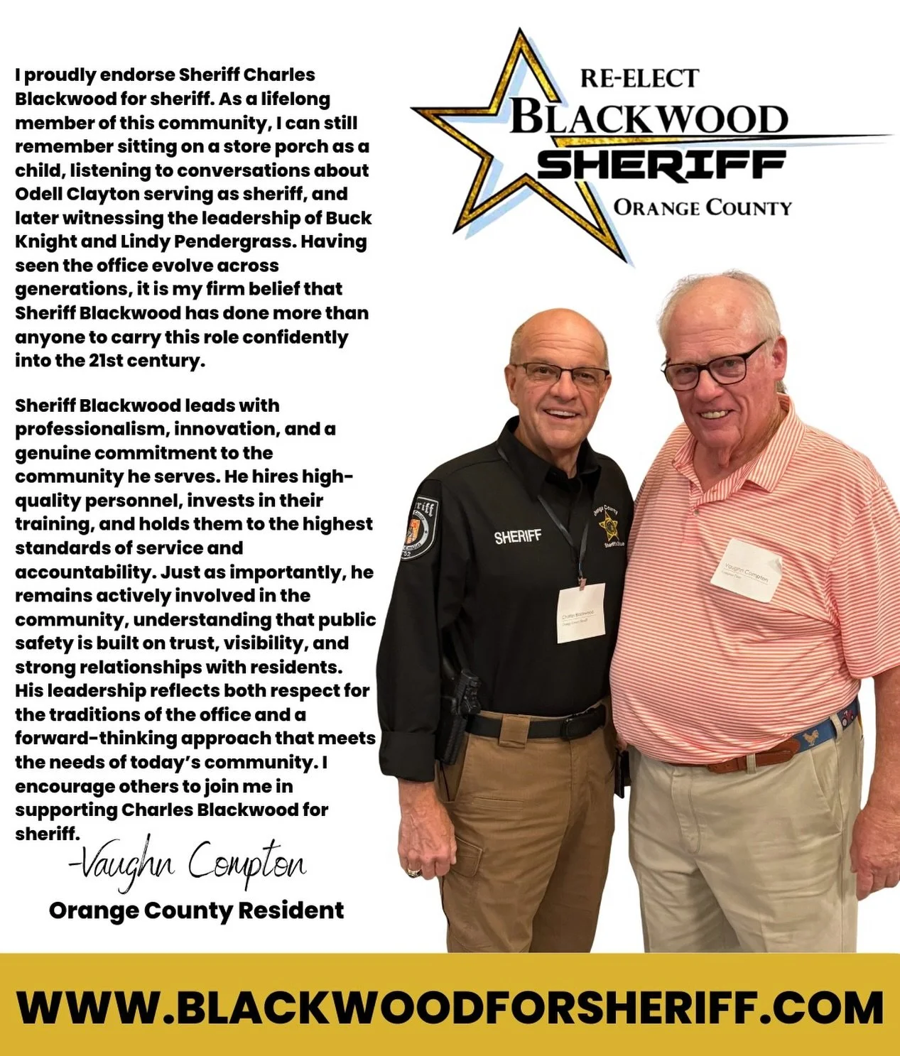 Thank you again for the trust you have placed in me to serve as YOUR Sheriff, and for your continued support as we approach the 2026 Primary Election.
